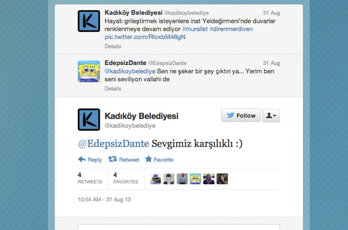 Kadıköy Belediyesi’nin bu eğlenceli tweetlerini ilk gördüğümüzde inanamadık, bir yanlışlık var herhalde diye düşündük. “Acaba sahte hesap mıdır? Yoksa değil midir?” diye düşünürken bir baktık öyle bir durum söz konusu değil. Bu tweetler cidden Kadıköy Belediyesi’nden geliyor ve ortada şahane diyaloglar dönüyor.