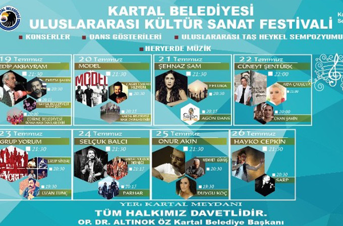 19 Temmuz’da başlayacak olan Kartal Belediyesi Uluslararası Kültür ve Sanat Festivali’nde birbirinden ünlü isimler Kartallılar için sahne alacak.