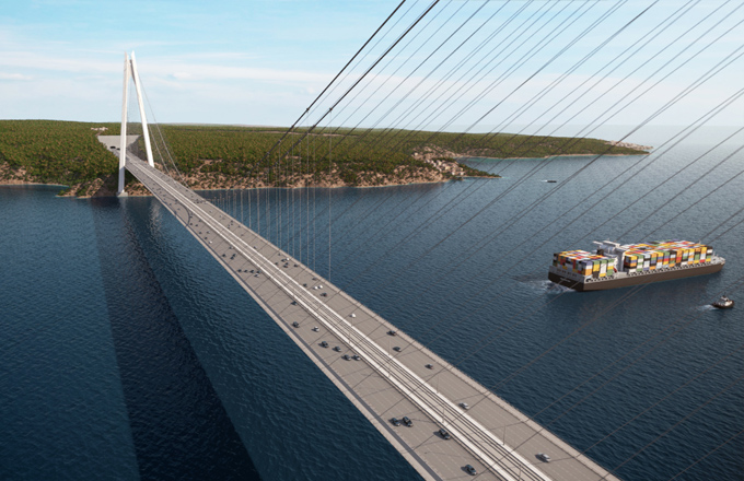 “3. Köprü ve bağlantısı olan 95 kilometrelik otoyolla ilerlemelerimiz çok iyi. Köprüyü ziyaret ettim, kediyolundan yürüdüm. 1408 metre açıklığa sahip olan köprü 320 metreden yüksek kuleye sahip. 59 tabliye var ve yerleştirme süreci devam ediyor. Her iki yakadan 19 olmak üzere toplam 38 tabliyenin montaj işlemi tamamlandı. Sadece 21 tabliyemiz kaldı. Tek bir tabliye 8-9 günde yerleştiriliyor. Üstelik deniz dalgası ve rüzgar seviyesi çok önemli.”