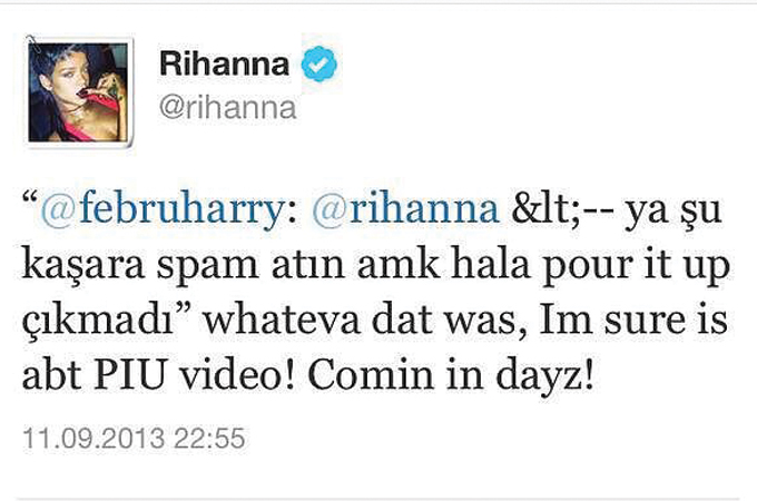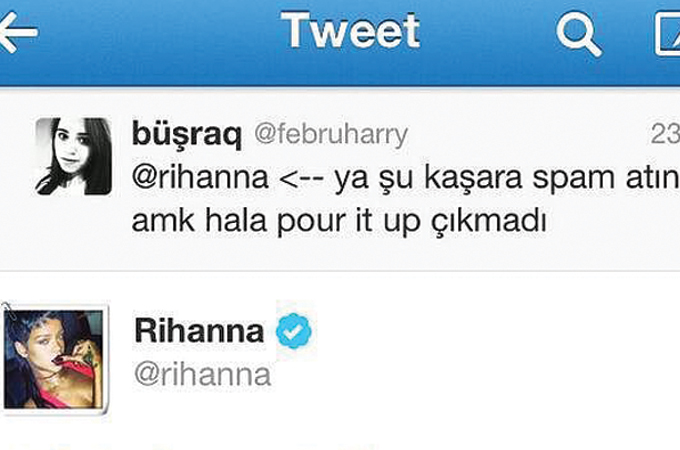 Bu tweet Rihanna’nın alçak gönüllülüğünün, halk sanatçısı olduğunun kanıtıdır. 7/24 tablet başındadır ve her türlü tweetinize itinayla cevap verir.