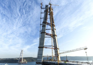 İstanbul trafiğini rahatlatacak olan 3’üncü köprü projesi hızla devam ediyor. Ulaştırma, Denizcilik ve Haberleşme Bakanı Elvan’ın, geçtiğimiz haftalarda katıldığı törenle köprünün ilk çelik tabliyesi takılırken, eğik askı halatları Güney Kore ve Malezya’dan deniz yoluyla İstanbul’a oradan da şantiye alanına getirilmeye başlandı. Önümüzdeki günlerde monte edilmesi beklenen 4 bin 400 tona kadar taşıma kapasitesine sahip halatlar, kulenin iki yanında yer alan çelik tabliye ile beton tabliye arasında dengelenen yükleri taşıyacak. 176 adet eğik askı kablosu köprü kuleleriyle çelik tabliyeler arasında bağlantıyı sağlayacak. Montajı tamamlandığında 1 adet olarak görülecek olan kablonun içinde 65 ile 151 arasında değişen sayılarda halat olacağı öğrenildi.