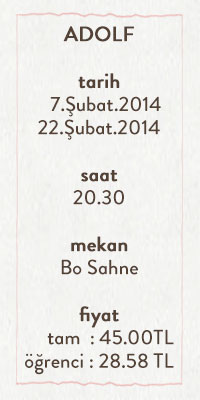 Hitler’in Berlin’deki sığınağında geçirdiği son 12 saati konu alan tek kişilik oyununun ardında yatan motivasyonu, yazar ve aktör Pip Utton şöyle tanımlıyor; “Bence tiyatronun birçok görevi ve işlevi var. Bunlardan biri de izleyicinin karşısına çıkıldığında onların arkalarına yaslanarak oyunu izlemelerini değil, koltuklarında dikilerek bazı gerçeklerle yüzleşmelerini sağlamaktır. Bazen bunu yapmanın tek yolu onları, aslında görmek istemedikleri şeylerle yüzleştirmektir ve Adolf da böyle bir oyun.”