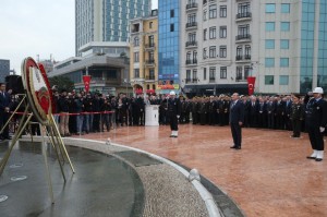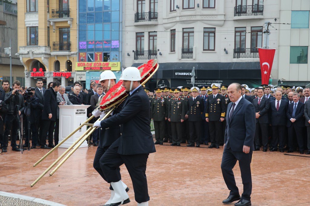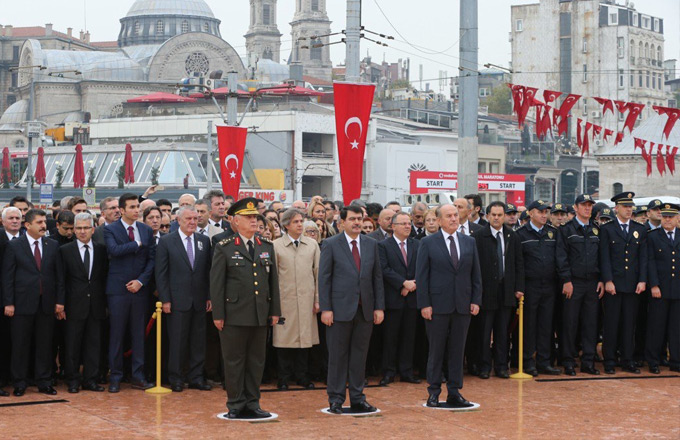 Cumhuriyet Anıtı önünde düzenlenen törene, İstanbul Valisi Vasip Şahin, İstanbul Büyükşehir Belediye Başkanı Kadir Topbaş, 1. Ordu ve İstanbul Garnizon Komutanı Orgeneral Ümit Dündar, CHP Milletvekili Mahmut Tanal, Beyoğlu Belediye Başkanı Ahmet Misbah Demircan ve diğer yetkililer katıldı.