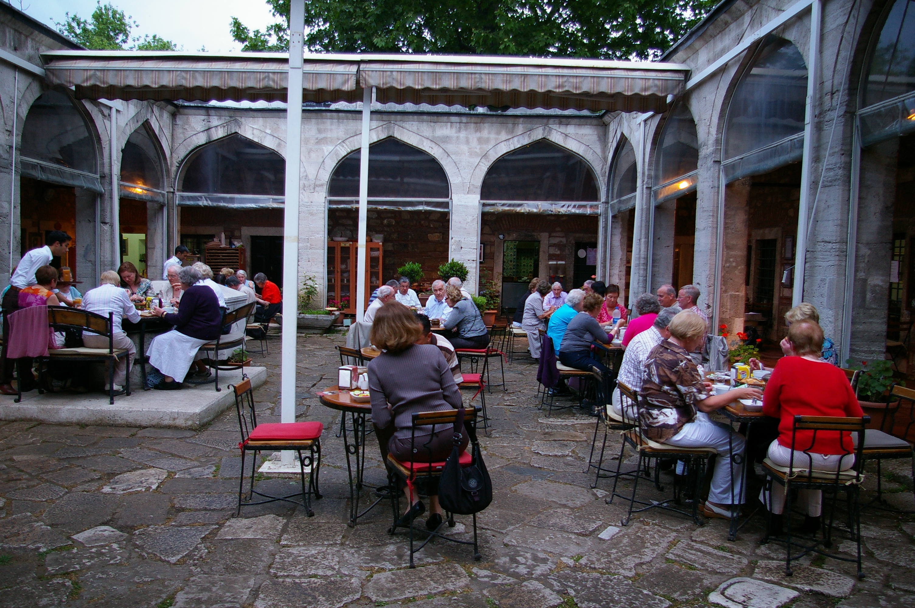 Avlusunda kurulu masalarda çayınızı, kahvenizi içip, denk gelirseniz ney dinlemek keyfinize keyif katacak.