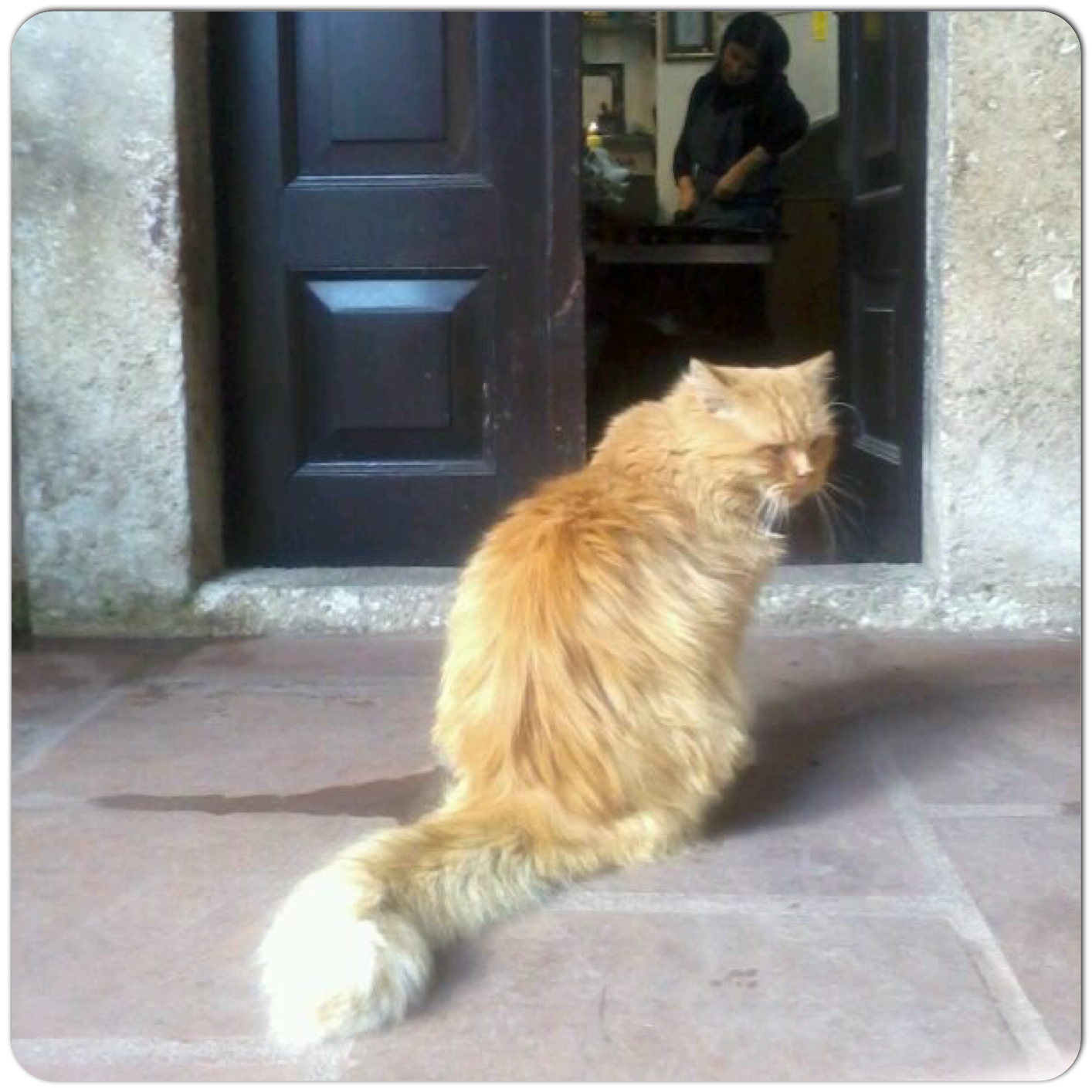 Sert bakışları, uzun uzun tüyleri ile Caferağa Medresesi’nin vazgeçilmezi Garfield.