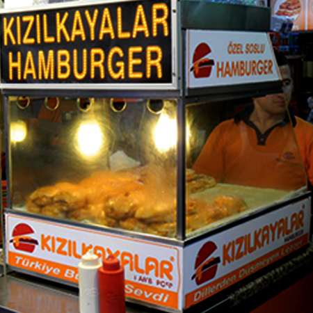 Taksim’e çıkıp da İstiklal Caddesi ile Sıraselviler Caddesi arasında yer alan büfelerde mola vermeyen yoktur. Bambi Cafe dilli kaşarlısı ile Kızılkayalar Hamburgercisi ise ıslak hamburgeri ile bu sıra sıra büfeler arasından ayrılır. Sabaha kadar açık olan büfelerin günlük cirosunun da ortalama 20-35 bin lira olduğu tahmin ediliyor. En çok ciroyu yapan büfenin de Kızılkayalar olduğu biliniyor.