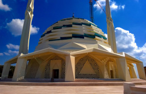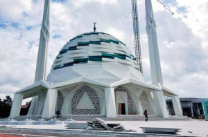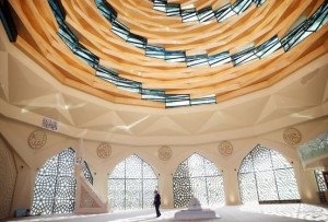 İnşası 3 yılda tamamlanan camide 500 ton çelik kullanıldı. Tasarımdaki dikkat çeken özelliklerden biri, şerefesiz tasarlanan çifte minare.