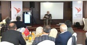 Söyleşi öncesinde yaptığı konuşmada erdemli insanda olması gereken özelliklere değinen Erdemli Yöneticiler Akademisi İstanbul İl Başkanı Adil Dayıoğlu, EYAD’ın yürüttüğü faaliyetleri anlattı. “EYAD İstanbul olarak medeniyet tasavvuru derslerimizde ilimiz, kamu ve özel sektördeki yöneticilerimizin fikri, ilmi gelişimlerine katkı sağlamak amacıyla bu programları tertip ediyoruz. Sizleri bilginin ve maneviyatın doruklarına ulaşmış değerli hocalarımızla buluşturuyoruz. Bugün de aramızda değerli bir ismi, Prof. Dr. Sadettin Ökten hocamızı ağırlıyoruz” dedi.
