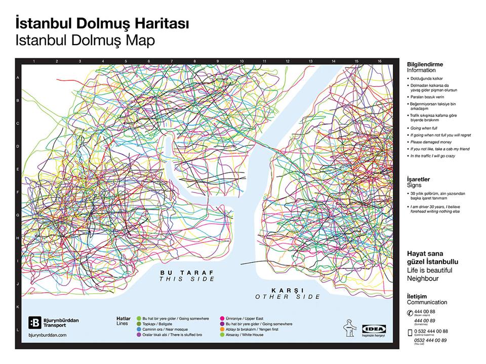 Şimdi bu haritanın içinden çıkabiliyorsan, buyur… Bu da İstanbul’un dolmuş haritası…