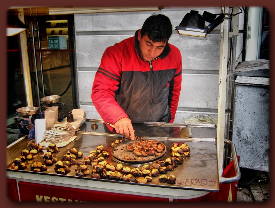 Taksim ve Kadıköy’de çok sık karşılaşacağınız sıcacık kestaneler… Elinizi ocağın üzerine uzatıp ısınmak da cabası…