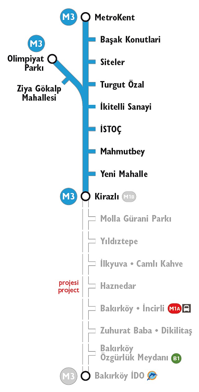 Hayatımızı kolaylaştıran metro hatları, günlük yaşamımızın vazgeçilmez ulaşım aracı oldu bile. Yeni hatların açılmasıyla birlikte daha fazla İstanbullu artık metrodan yararlanabiliyor. Ve bunlardan en yenisi M3 Başakşehir Metro Hattı’nın yapımına 2006 yılında başlanan ve Başakşehir – Kirazlı – Olimpiyatköy arasında hizmet verecek olan metronun uzunluğu yaklaşık 21,7 km olup 11 istasyona sahipmiş. Böylece İstanbul’da metro ağı 124 kilometreye ulaşmış. Metro sayesinde Otogar-Olimpiyat Stadı arası ulaşım süresi 26 dakikaya inmiş. Ayrıca Olimpiyatköy’de trenler için depo sahası ve atölye binası bulunuyormuş. 122 milyon Dolarlık vagon alımlarıyla birlikte toplam 1,477 milyar Dolar’a mal olmuş.
