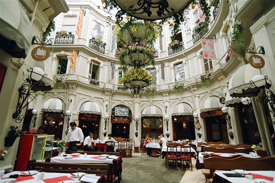 Biraz daha aşağı devam edince yol üstünde pasajlar çıkmaya başlıyor. İlk pasajımız, Atlas Pasajı. Kendisini içindeki sinemasıyla, yüksek tavanlarıyla, ince süslemeleri ve renkli dükkanlarıyla tanıyoruz. Ancak, 1870 yılında yapılan bu bina aslında işadamı Hagpop Köçeyan’ın kışlık konağıymış (Pasajın girişini ahır olarak kullanıldığını hayal edince insan bir tuhaf oluyor). Zaman içinde konak dışında, at cambazhanesi ve Postahane genel Müdürlüğü olarak da kullanılan bina, 1932’den sonra eğlence ve sanata ilgili işletmelerle tanışıyor ve yavaş yavaş günümüzdeki haline geliyor.
