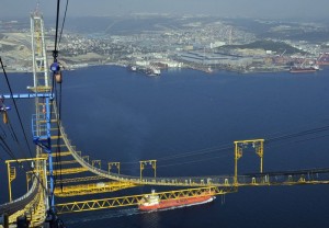 İstanbul ile İzmir arasındaki ulaşım süresini 9 saatten 3,5 saate indirecek Gebze-Orhangazi-İzmir Otoyolu Projesi’nin en büyük ayağını oluşturan İzmit Körfez Geçişi Asma Köprüsü’ndeki çalışmalar, Anadolu Ajansı (AA) ekibi tarafından kulelerin en yüksek noktasına çıkılarak görüntülendi.