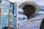 Protestosunu böyle duyurma gereği aklına nereden düşmüş bilinmez, belli ki işe yarayan bir protesto biçimi olmuş, oldukça dikkat çekiyor. Sessiz, tek kelime etmiyor… Aşık Mahzuni çalıyor elindeki küçük teyp/müzik çalarda: