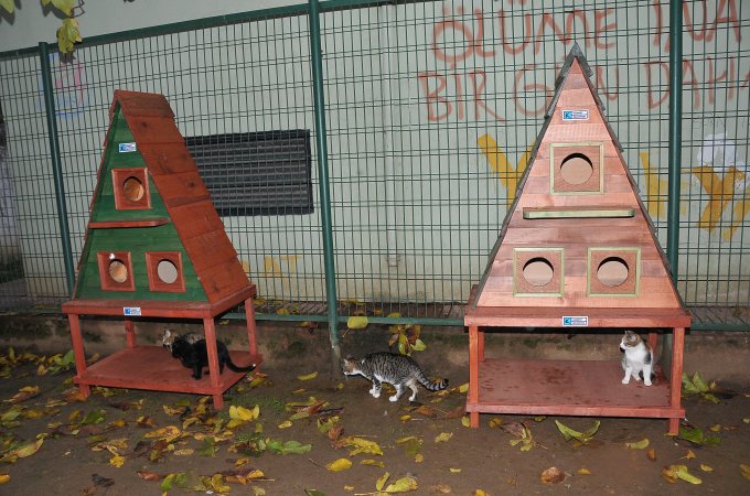 Artık Kadıköylü sokak kedilerinin de başlarını sokacakları birer yuvaları var. Kadıköy’de parklarda yaşayan kediler artık üşümeyecek. Kadıköy Belediyesi, soğuk ve yağışlı havalar nedeniyle sokak da zor durumda kalan, parklarda yaşayan kediler için yaptırdığı kedi evlerini parklara koydu. Ahşap iki katlı kedi evleri Özgürlük, Yoğurtçu ve Fenerbahçe Parklarına 10 Aralık günü yerleştirildi. Mama ve su kapları da bırakılan kedi evlerini kediler kısa sürede sahiplendi.