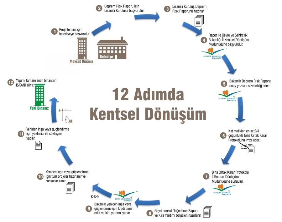 Kentsel dönüşümden faydalanmak isteyen vatandaşlar ilk olarak binalar için bir deprem risk raporu alarak binanın riskli olduğunu tespit ettirmeliler.