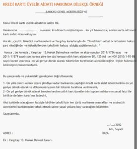 dilekce_kredi_karti