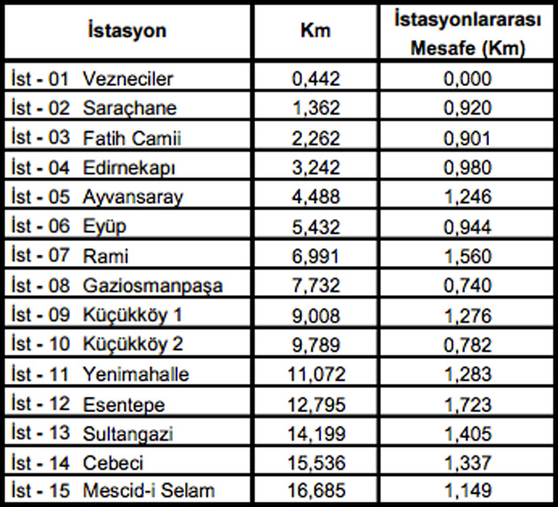 Toplam 17,31 kilometre uzunluğuna sahip olacak metro hattı 15 istasyondan oluşacak. İşte Vezneciler-Sultangazi metro hattı durakları: