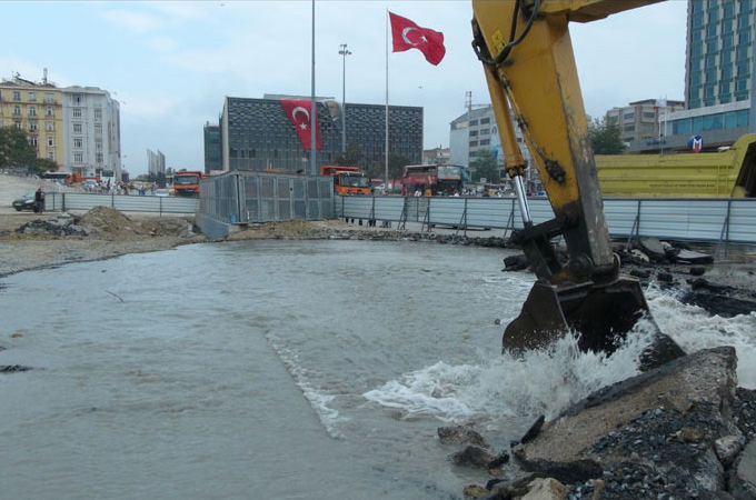 Yayalaştırılmış hâliyle en son böyle görmüştük Taksim’i… Yağmur, yayalaştırma çalışmasıyla yeni bir çehreye bürünen Taksim Meydanı’nı adeta gölete çevirdi.