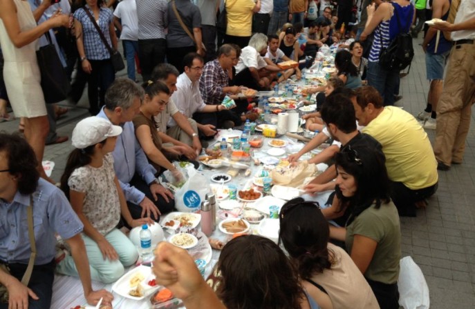 Açılan oruçların ardından, Gezi Parkı Eylemlerinden alıştığımız üzere, çöpleri toplayan katılımcılar ‘Her yer Taksim her yer direniş’, ‘Bu daha başlangıç mücadeleye devam’ sloganları eşliğinde sofralarını topladı.