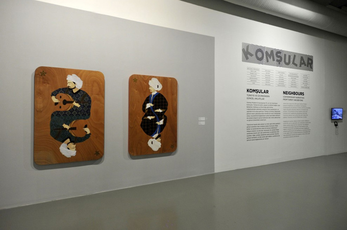 İstanbul Modern’de Çelenk Bafra ve Paolo Colombo’nun küratörlüğünü üstlendiği sergide Balkanlar, Kafkasya ve Ortadoğu’dan 17 ülkenin 35 sanatçısının sanat pratiğindeki dilleri, özellikle de anlatı, sözlü gelenek ve halk tiyatrosu gibi formları kullanan veya onlarla ilişki kuran çalışmaları ziyaretçileriyle buluşuyor. Temelinde “komşular” düşüncesi yatan sergide Abdülcanbaz (Turhan Selçuk), Furat al Jamil, Mounira Al Solh, Maja Bajevic, Sonia Balassanian, Vesna Bukovec, CANAN, Eteri Chkadua, Ana Cigon, Rena Effendi, Nezaket Ekici, Cevdet Erek, Mona Hatoum, Gül Ilgaz, Babak Jalali, Lamia Joreige, Hayv Kahraman, Hatice Karadağ, Sevdalina Kochevska, Pavlos Nikolakopoulos, Fahrettin Örenli, Adrian Paci, Michail Pirgelis, Aslı Sungu, Nasra Şimmes, Burcu Yağcıoğlu, Nil Yalter ve daha birçok sanatçının eseri bulunmakta.